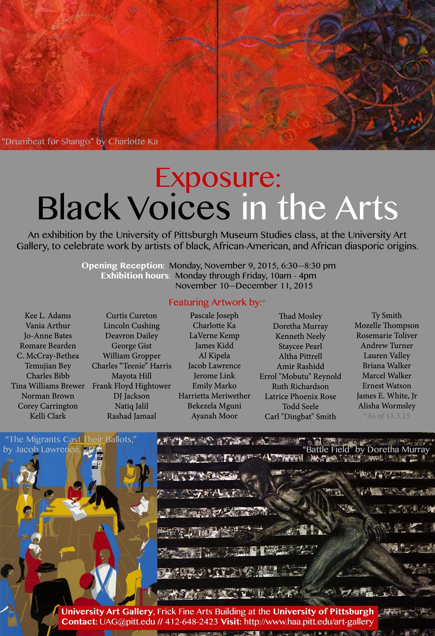 Exhibition runs Monday through Friday, from 10am-4pm, until December 11, 2015 at the University Art Gallery, Frick Fine Arts Building, University of Pittsburgh. Read more: Closing the Gap.